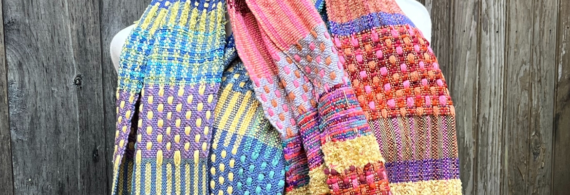 Fibers include the luxuriously soft rayon chenille, 100% cotton, tencel, rayon, bamboo and novelty fibers. Doubleweave scarves are woven with supersoft merino wool and tencel.